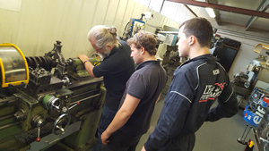 Luc et Roméo construisent le moteur durant leur formation à l’École de la Performance (Nogaro)